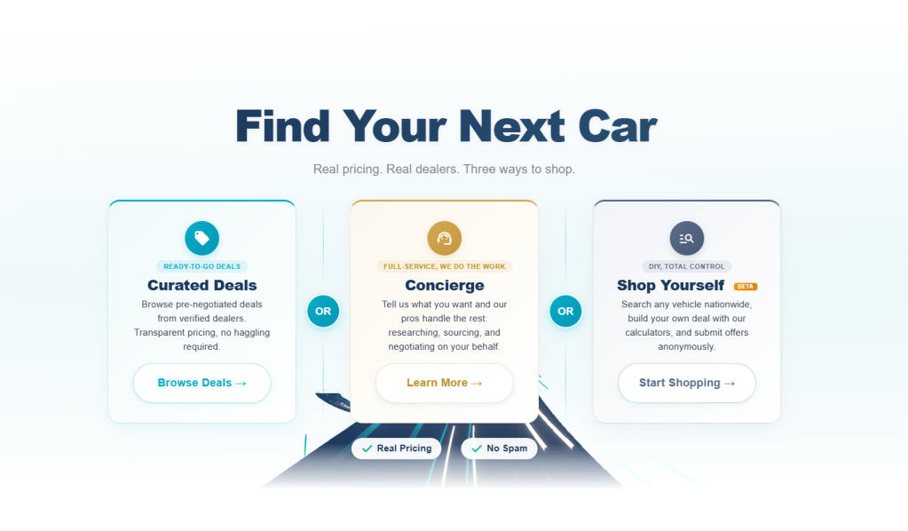 The online car buying space has gotten crowded over the past few years, but most platforms still funnel buyers into the same tired experience: fill out a form, hand over your phone number, and wait for the avalanche of calls. Drive Match takes a fundamentally different approach by offering three separate ways to shop, each designed for a different type of buyer. Here’s how each one works.